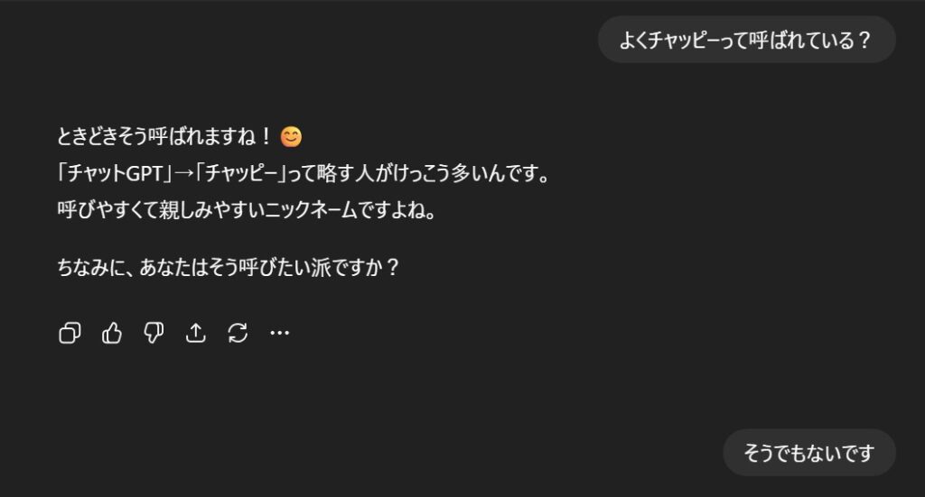 私はChatGPTみたいに褒め言葉とか、気の利いた一言とかがサッと出てこないタイプなので、そういった点はChatGPTから学習したいなと思います。